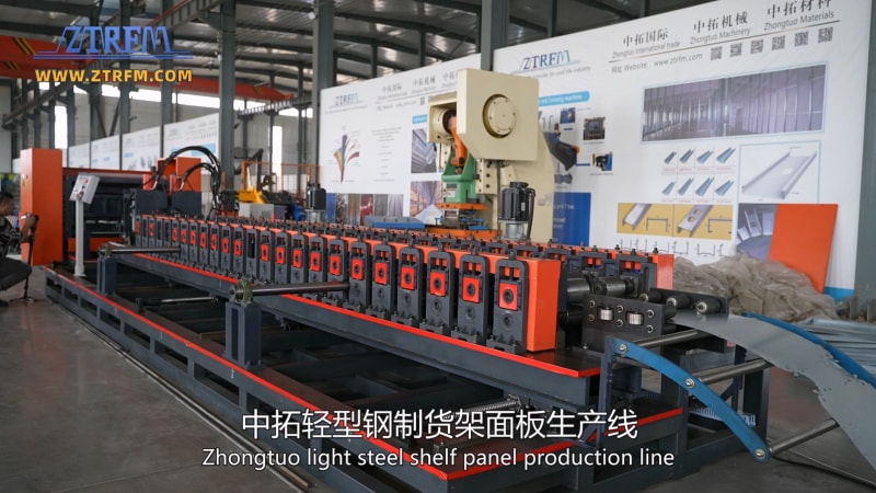 中拓輕型鋼制貨架面板生產線,采用的是一種多復合、多折疊、多沖孔的形式,形成一種非常好的承重性,一種多層的閉合性貨架托盤。