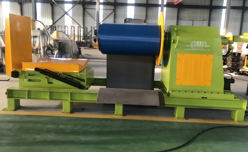 金屬-PE覆膜生產線由以下部件組成:5噸或10噸或更大的液壓開卷機(帶或不帶裝載車可選)-承載鋼卷和PE膜,熱壓機,壓緊輥, 收卷機。