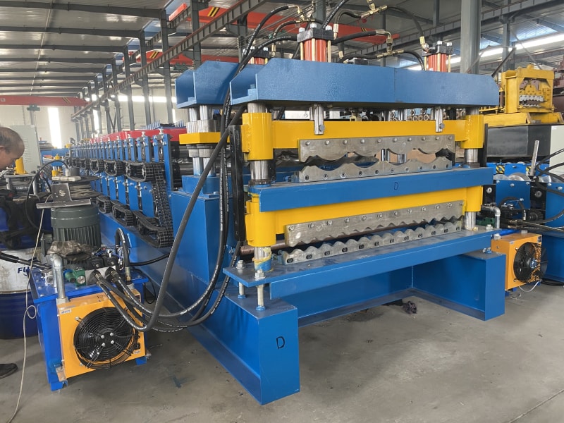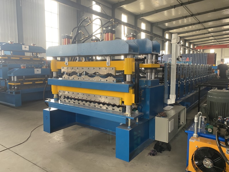 雙層金屬屋面瓦成型機主要用于生產金屬屋面瓦,一臺機器可以生產兩種不同的屋面瓦,機器是根據客戶想生產的屋面瓦類型定制的。